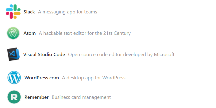 - 일렉트론을 이용해 개발된 앱은 https://www.electronjs.org/apps 에서 확인할 수 있습니다.