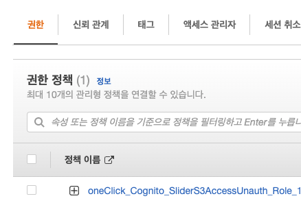 "oneClick_Cognito_SliderS3AccessUnauth_Role_..." 항목을 클릭합니다.