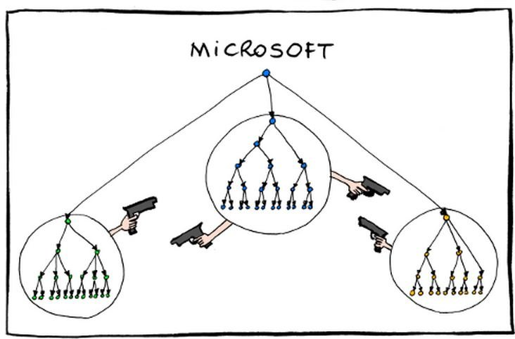 똑똑한 직원들을 뽑아 서로 총질을 시킨다는 그림이 유명해질 정도로 내부에서는 경쟁이치열했습니다.