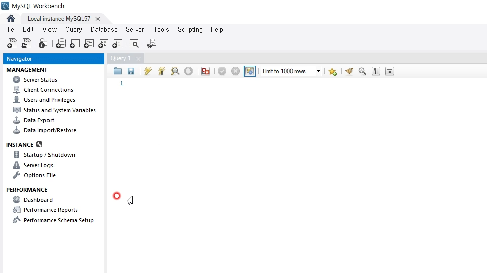 Connect to Server - 설치가 완료되고 MySQL Workbench가 실행됩니다.
