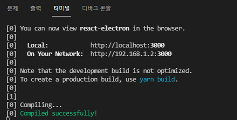 - electron 스크립트는 react가 완료되길 기다린 후 실행하게 합니다.