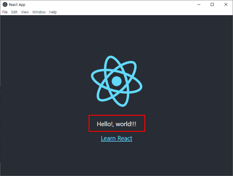다시 실행하면 다음과 같이 일렉트론에서 리액트를 실행한 화면이 나옵니다.