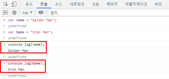 - 대소문자를 구분합니다.