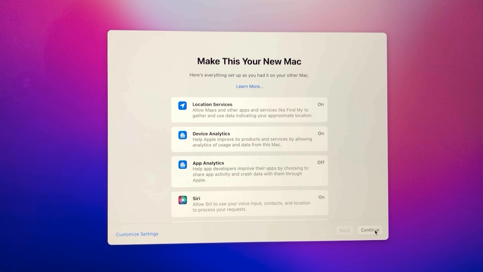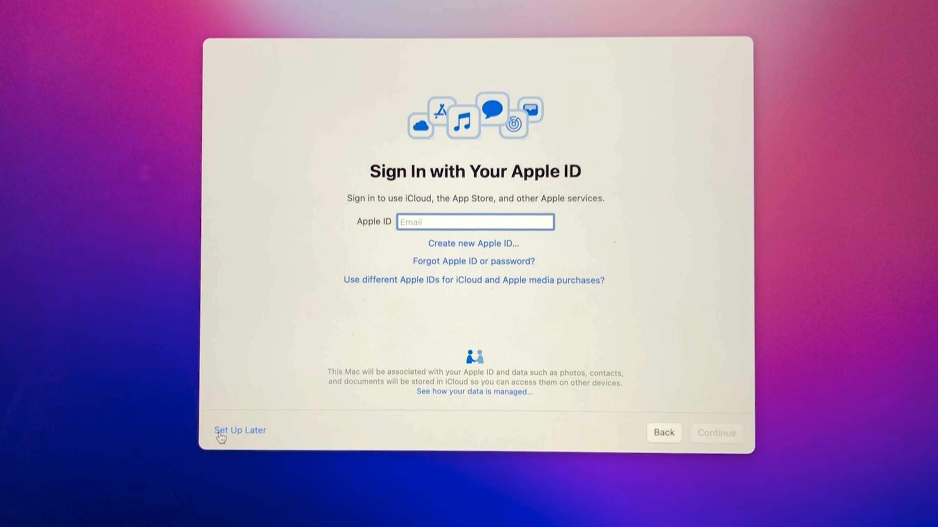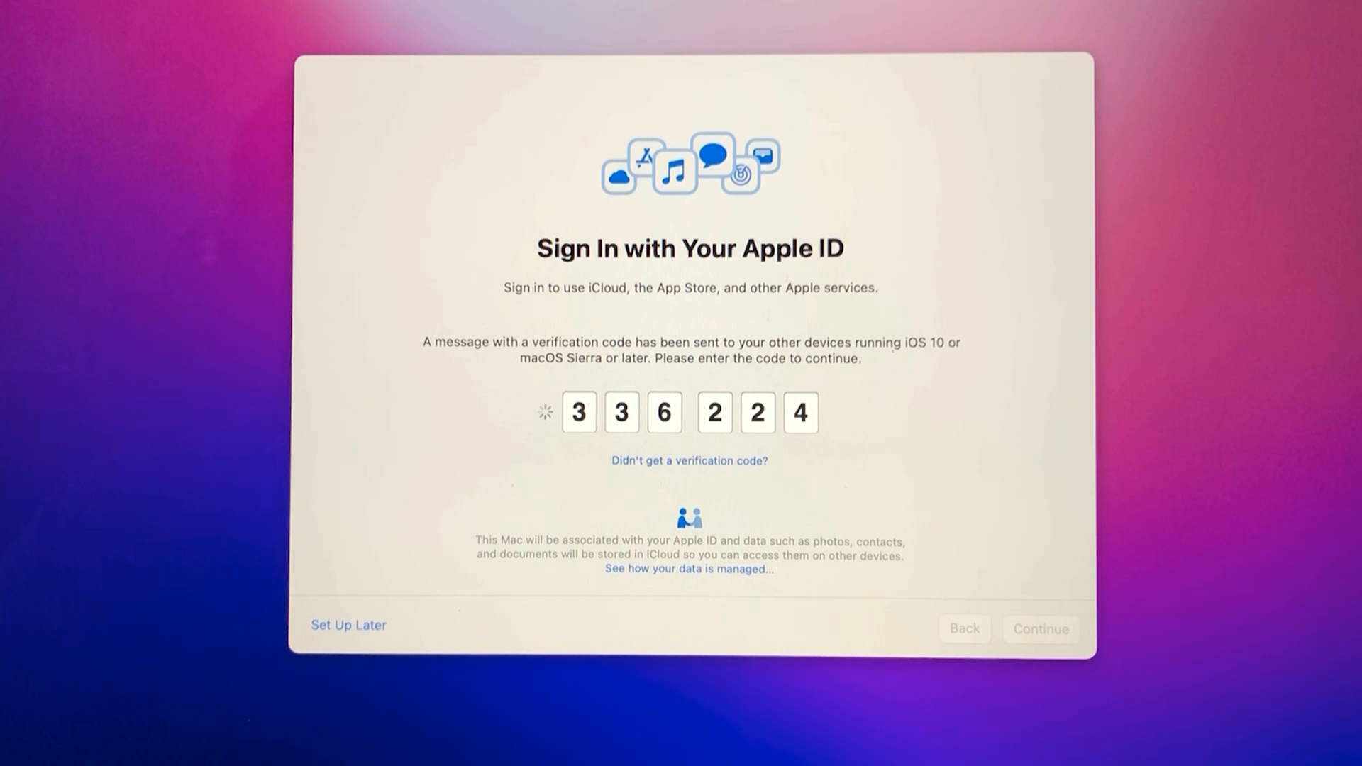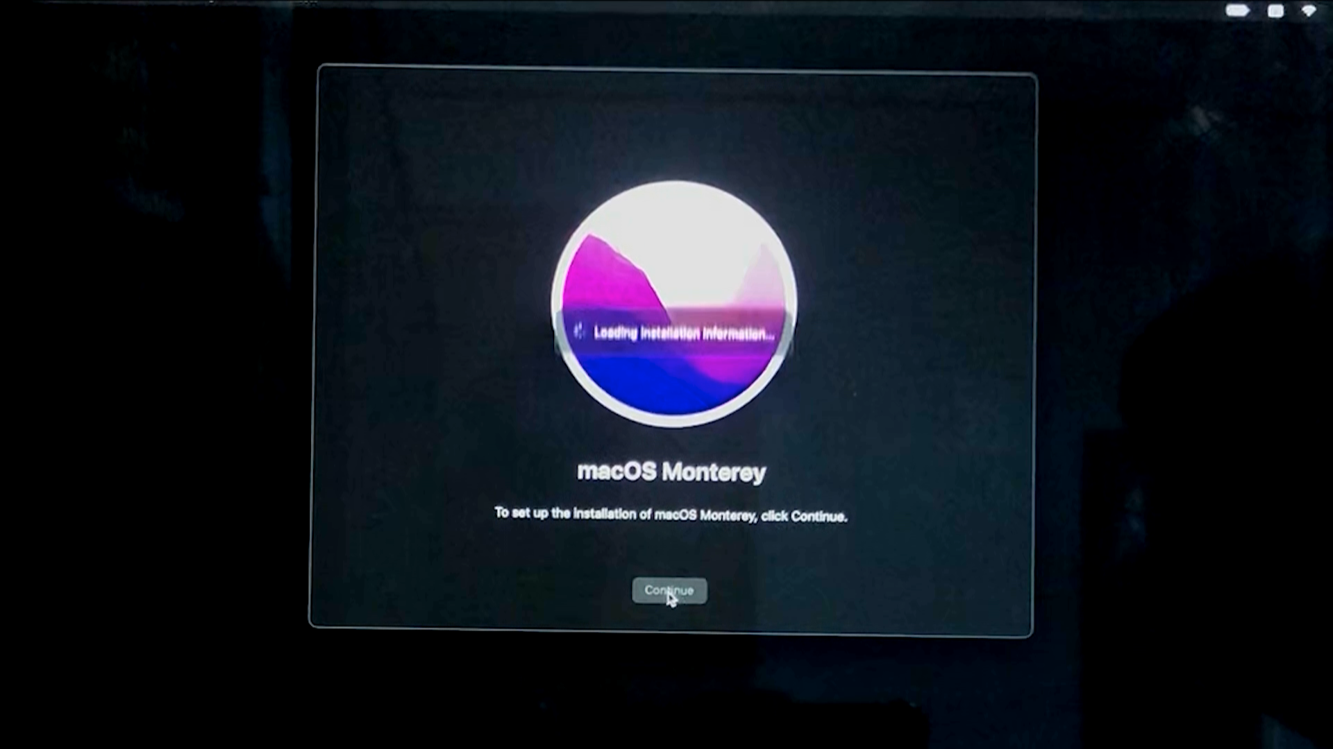 macOS Monterey 창에서 Continue를 클릭합니다.
