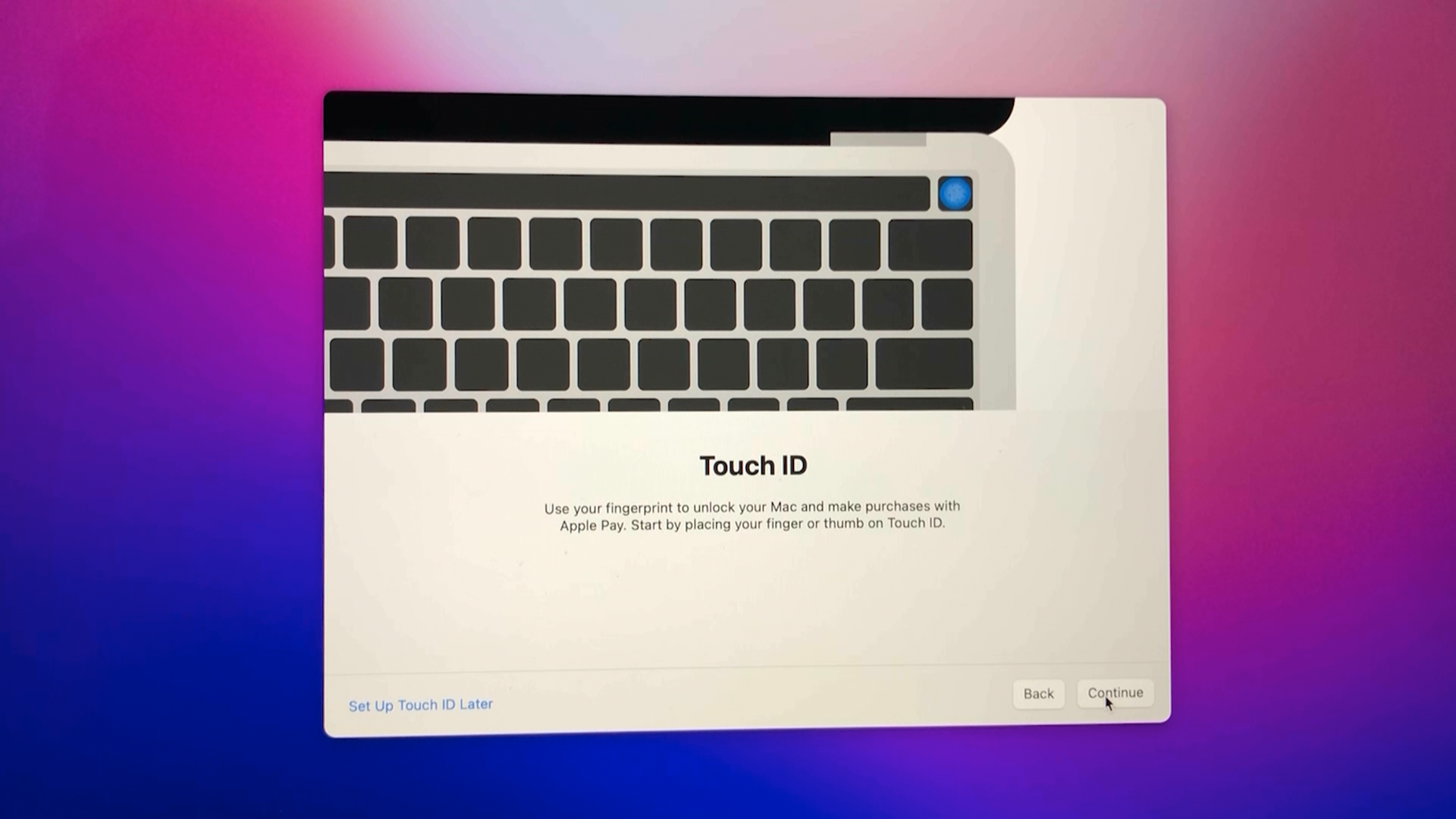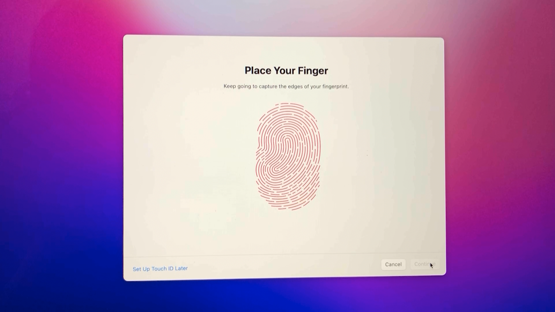 Touch ID 화면에서도 Continue 버튼을 클릭합니다.