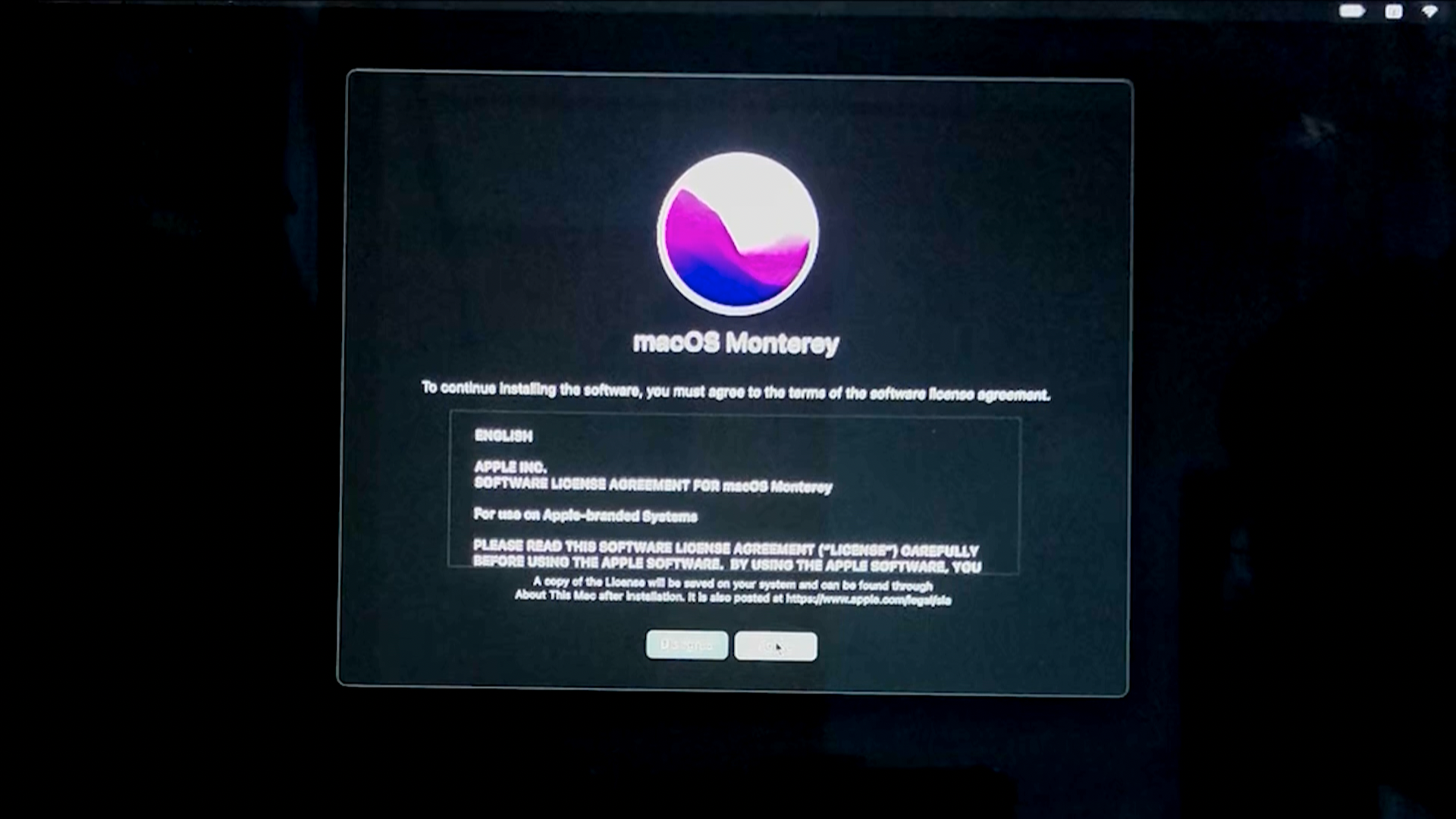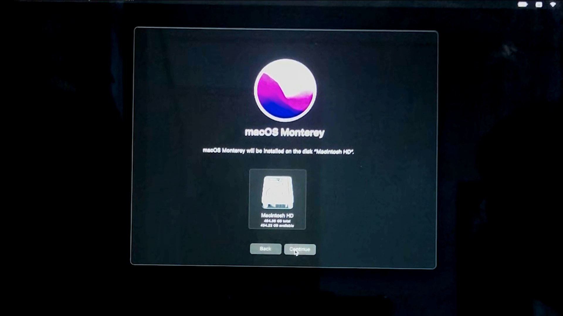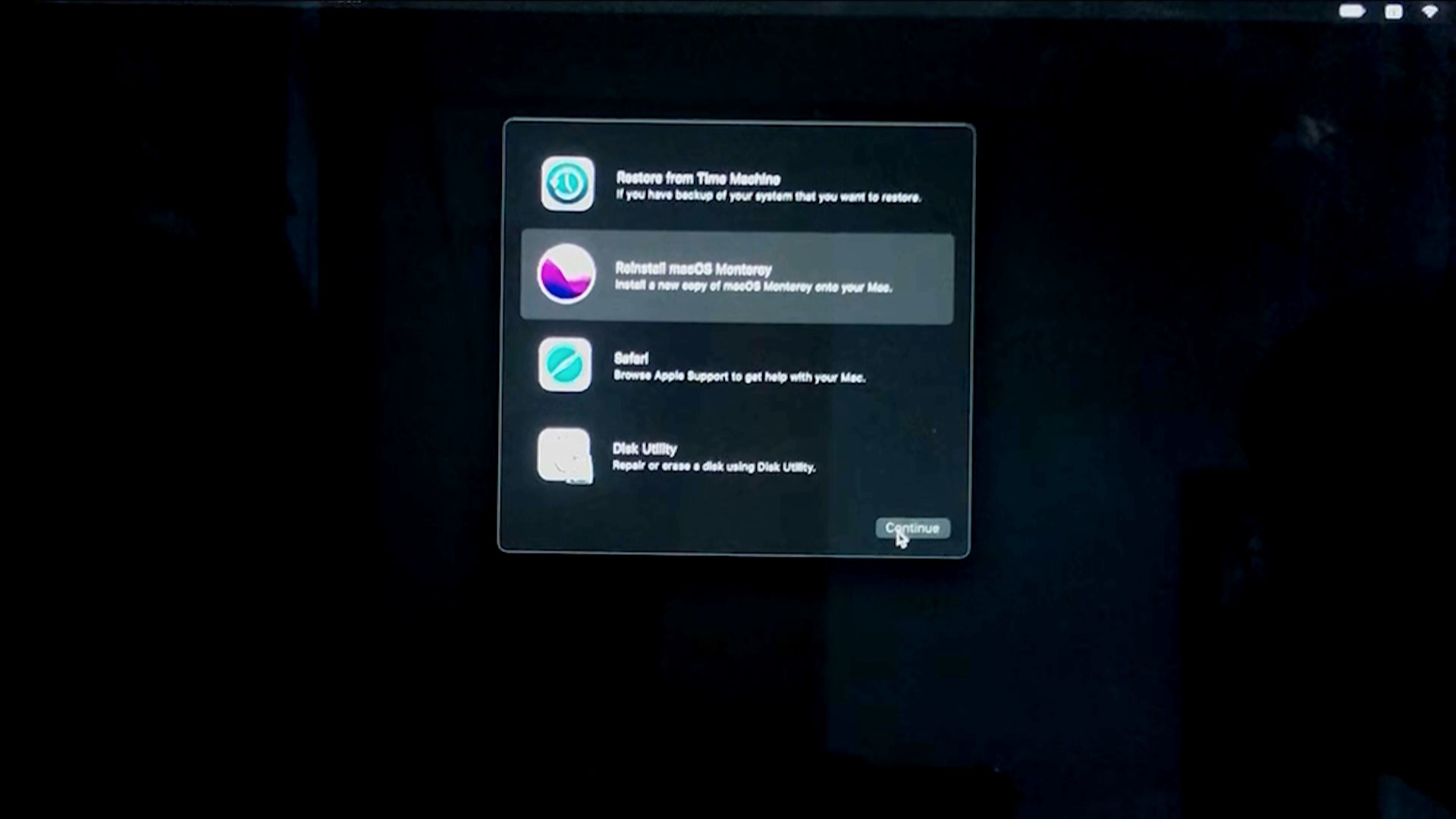 다시 옵션창이 나오면 Reinstall macOS Monterey를 선택하고 Continue를 클릭합니다.