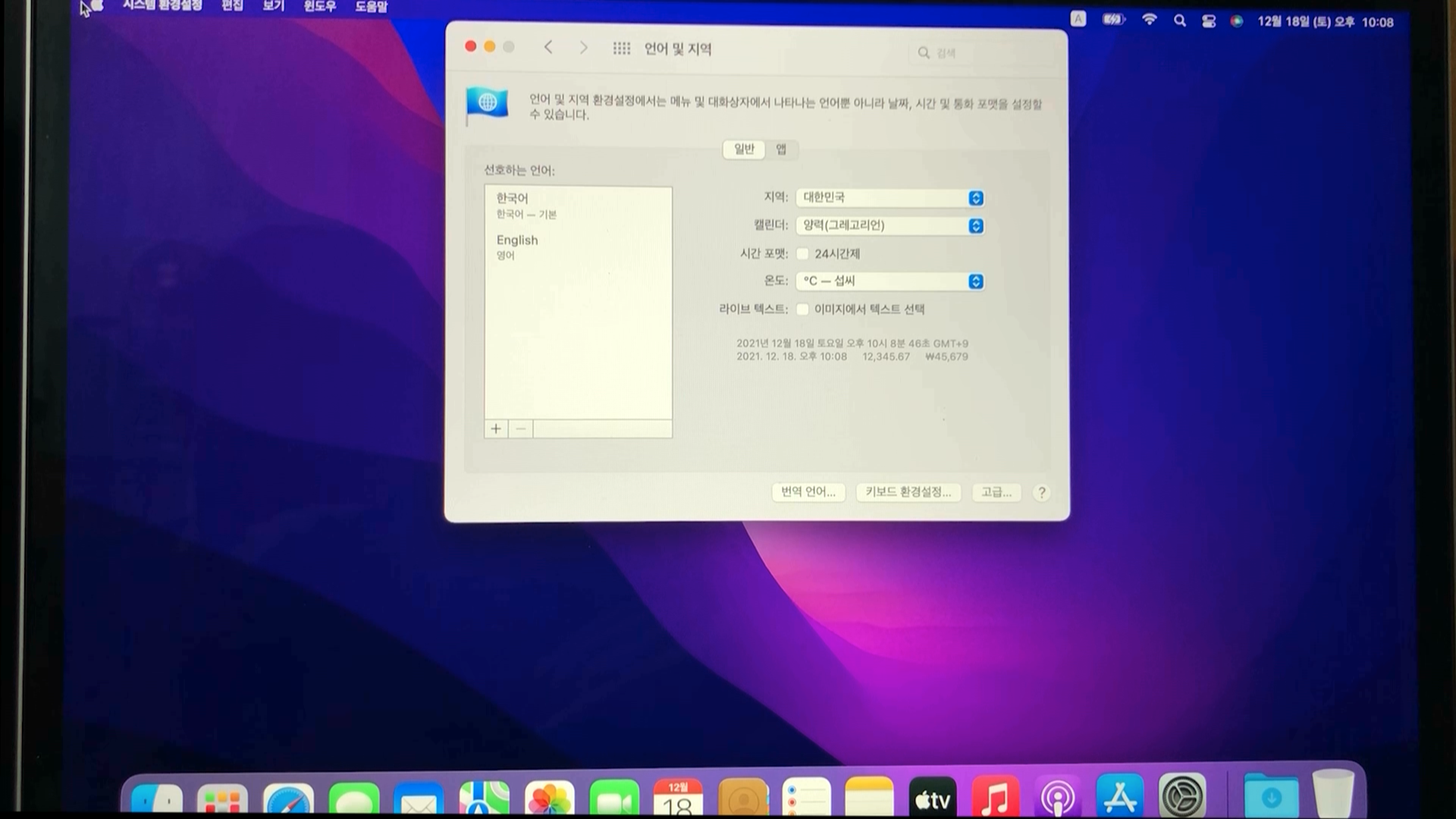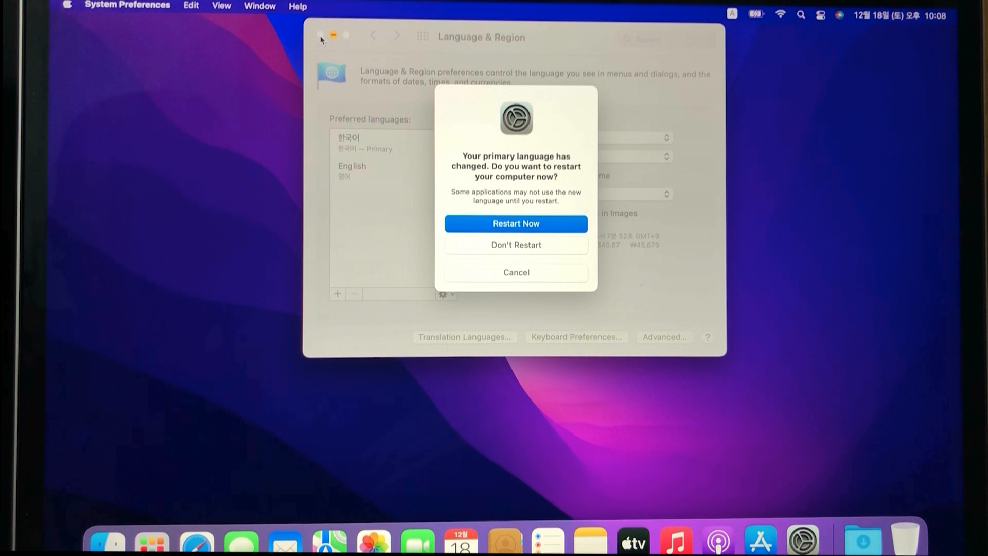 맥을 재시작 하면 다음과 같이 한국어로 설정이 완료됩니다.