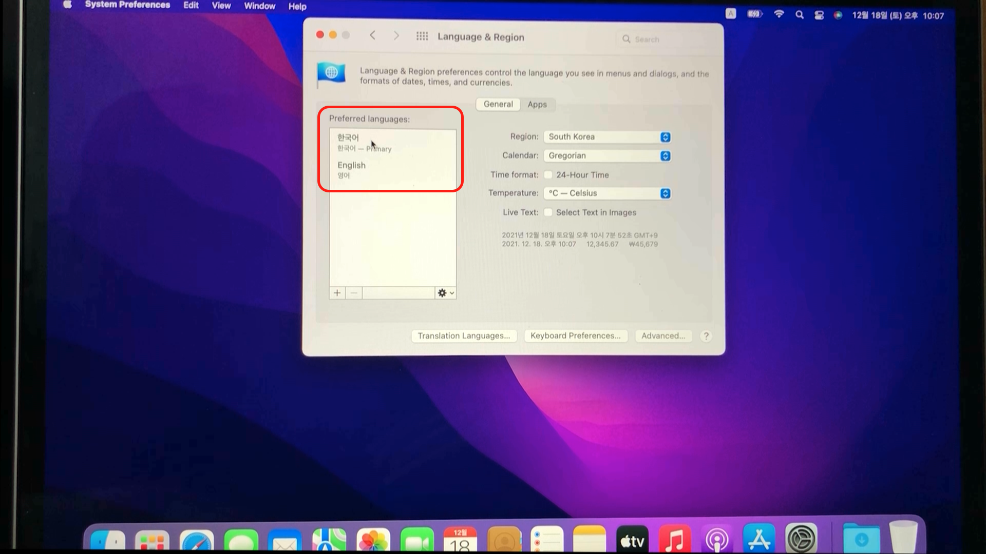 시스템 설정에서 Language & Region을 선택합니다.