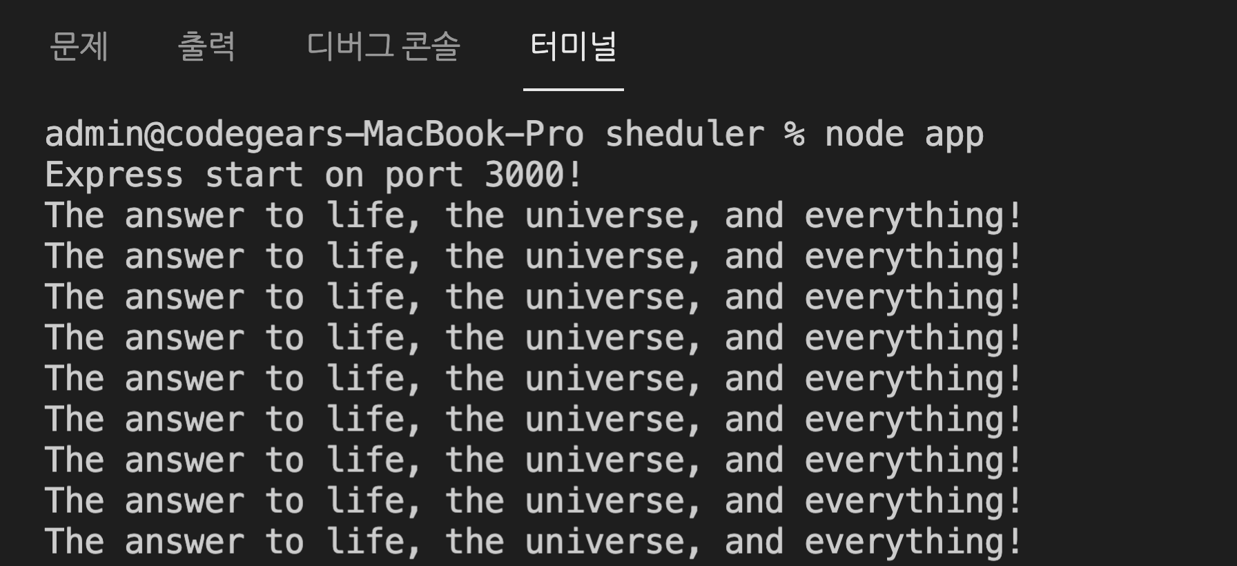 이상으로 Express에서 스케줄러를 만드는 방법이었습니다.