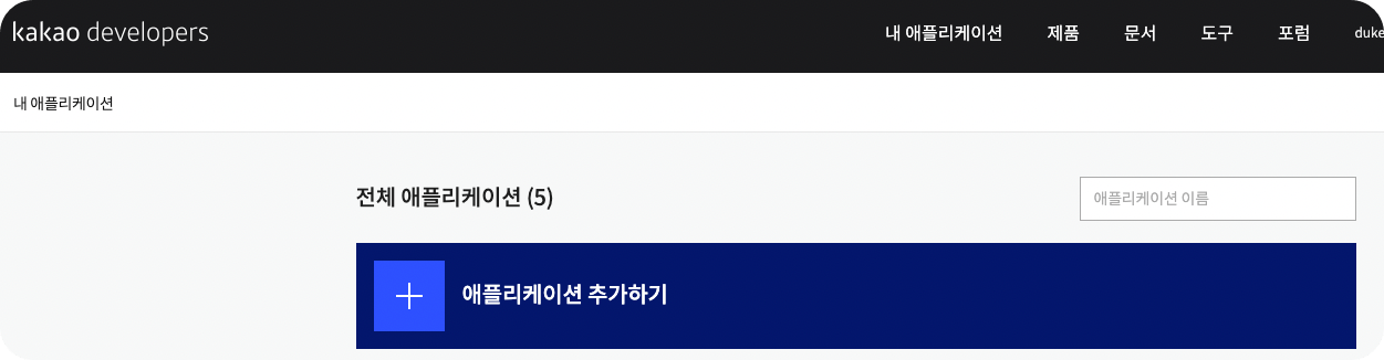 카카오 로그인을 사용하려면 kakao developer 사이트에서 애플리케이션을 만들어야합니다.