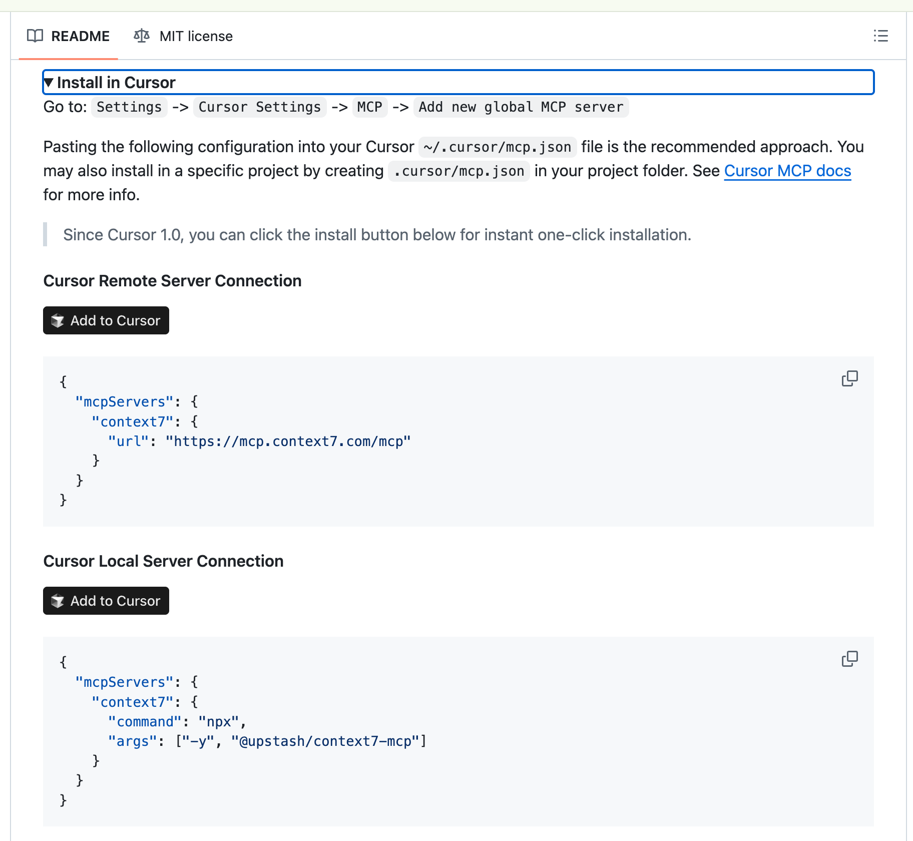 Context7 MCP를 설치하면 개발 프레임워크의 최신 공식 문서를 참조할 수 있습니다.