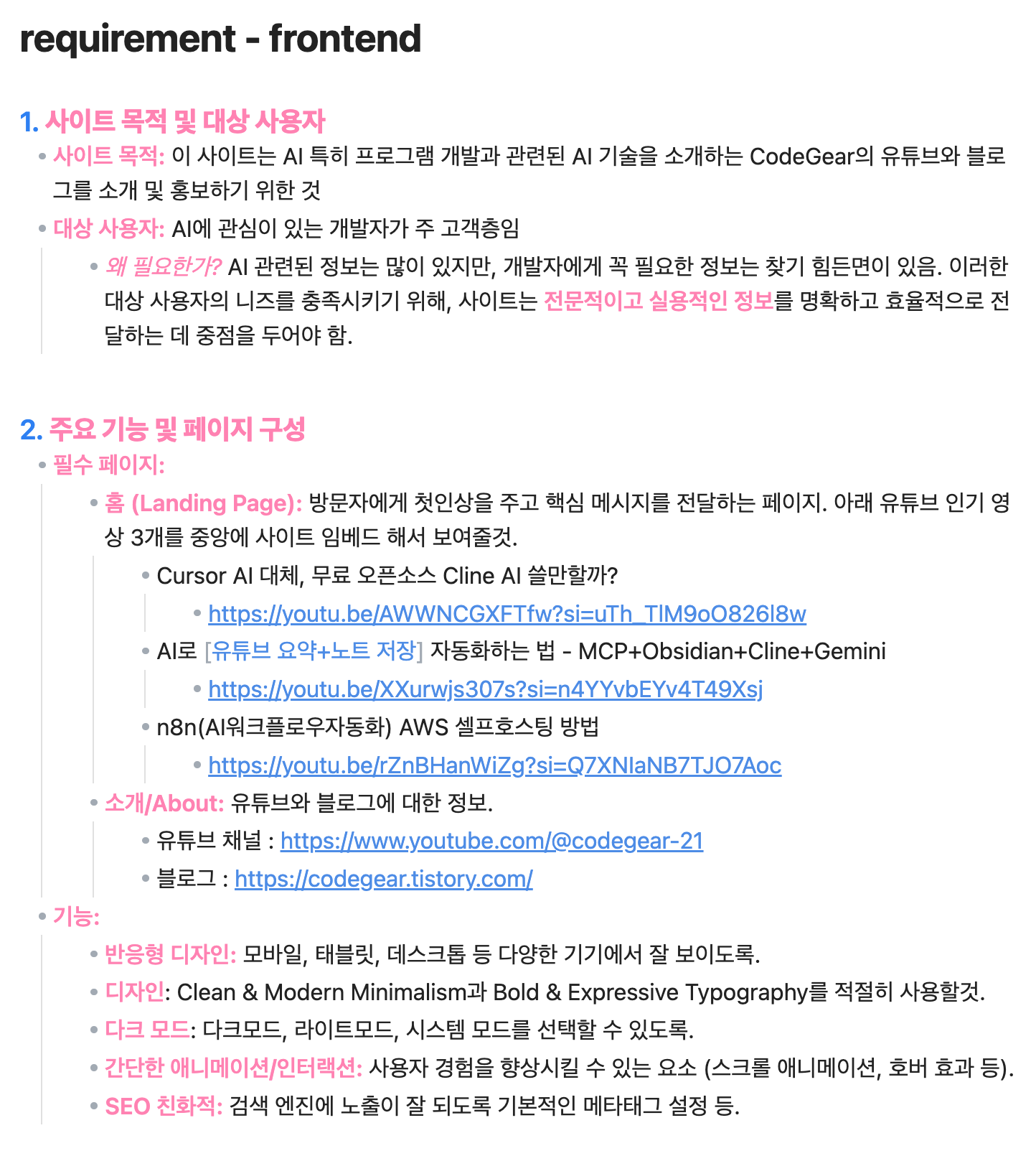 다음은 codegear.info 프론트엔드 개발을 위한 requirement-frontend.md 문서입니다.
