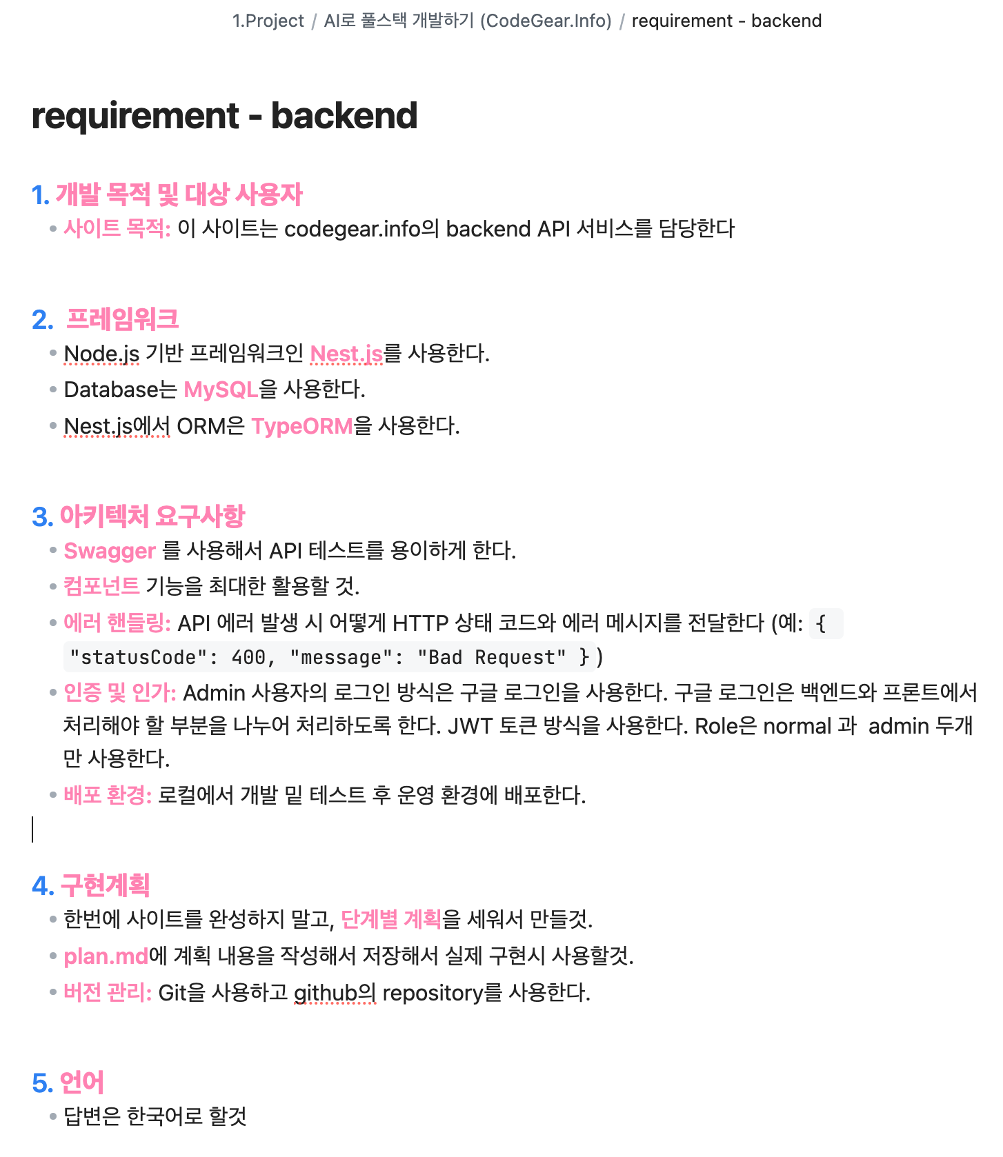이제 requirement.md를 이용해서 개발을 요청해 보겠습니다.