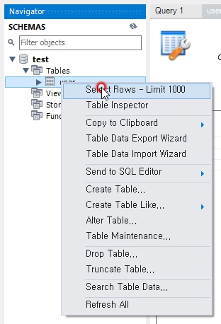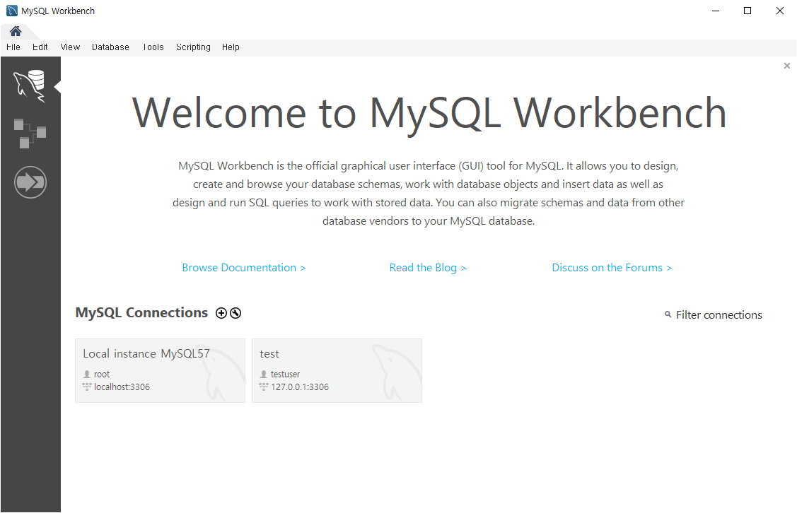 MySQL Workbench를 이용해서 db에 접속합니다.