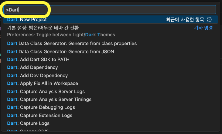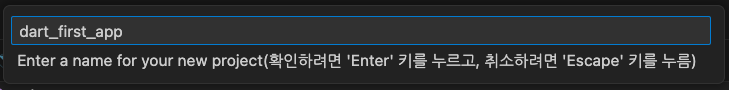 저는 "dart_first_app"라는 폴더명을 사용했습니다.
