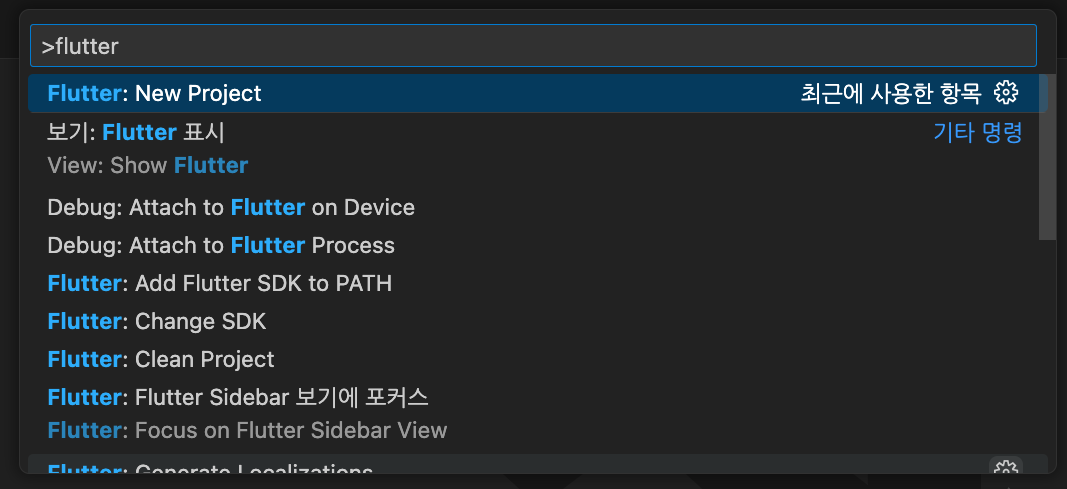 VSCode에 Flutter extention을 설치합니다. Flutter extention을 설치하면 Dart도 같이 설치가 됩니다.