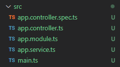 - app.module.ts : module 소스 - 모듈을 정의합니다.(controller와 service 정의)