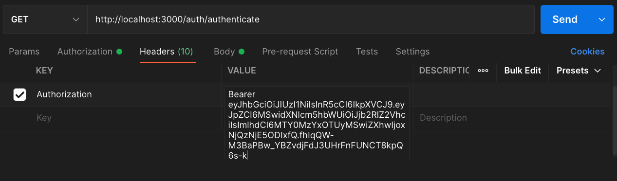 jwt 인증 모듈의 개발이 완료되었으므로 Postman을 이용해서 테스트를 해봅니다.