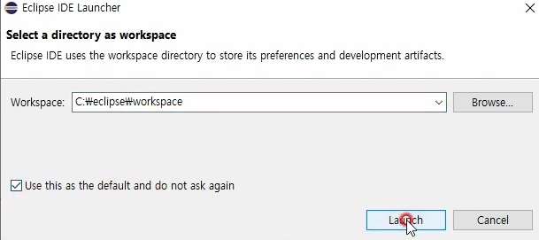 Use this as the default and do not ask again에 체크한 후 Launch 버튼을 클릭합니다.