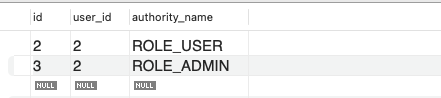 MySQL의 user_authority 테이블에 관리자 권한을 추가합니다.