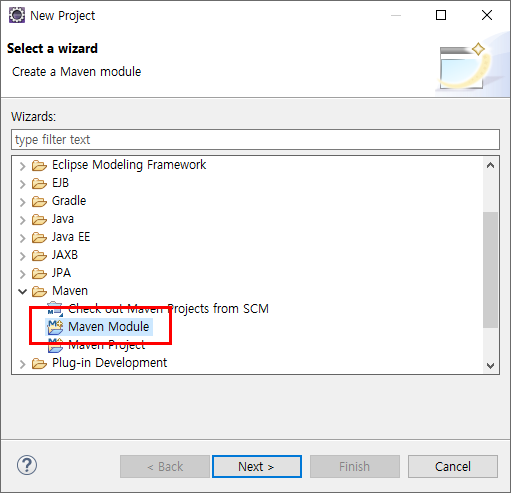 - 팝업창에서 Maven - Maven Module을 선택합니다.