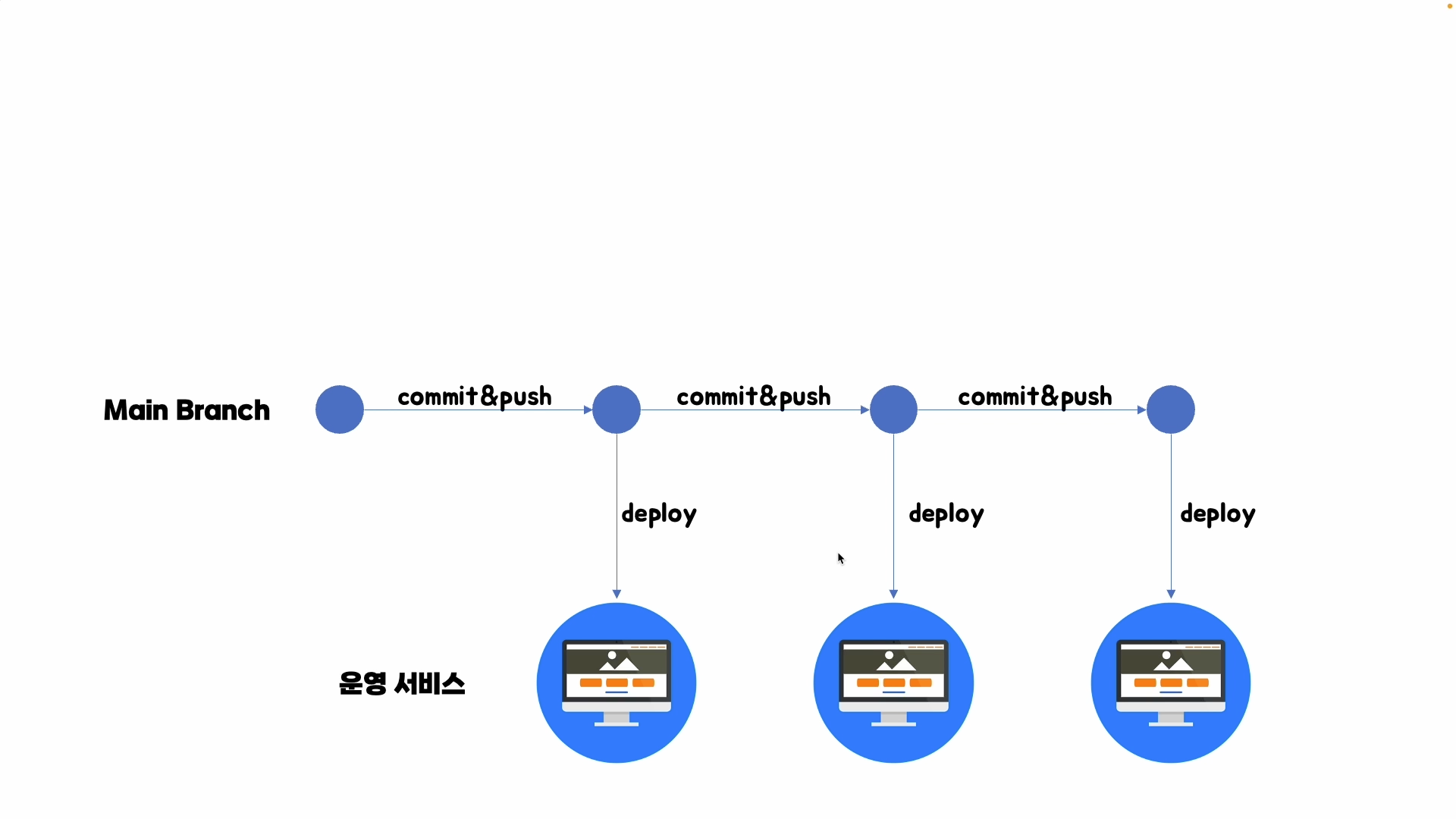- Main Branch에 push될때 운영 배포가 이루어지게 설정을 해 놓았다면,