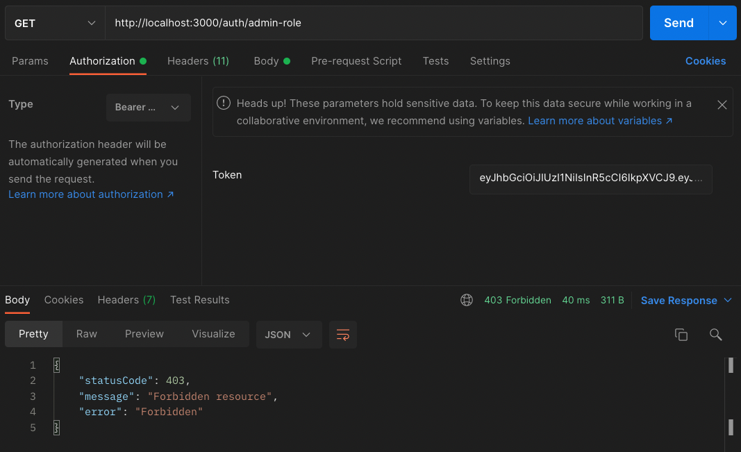 * 참고로 백엔드에서 admin 권한 체크를 하실때는 controller에 다음과 같이 데코레이터를 추가하시면 됩니다.
