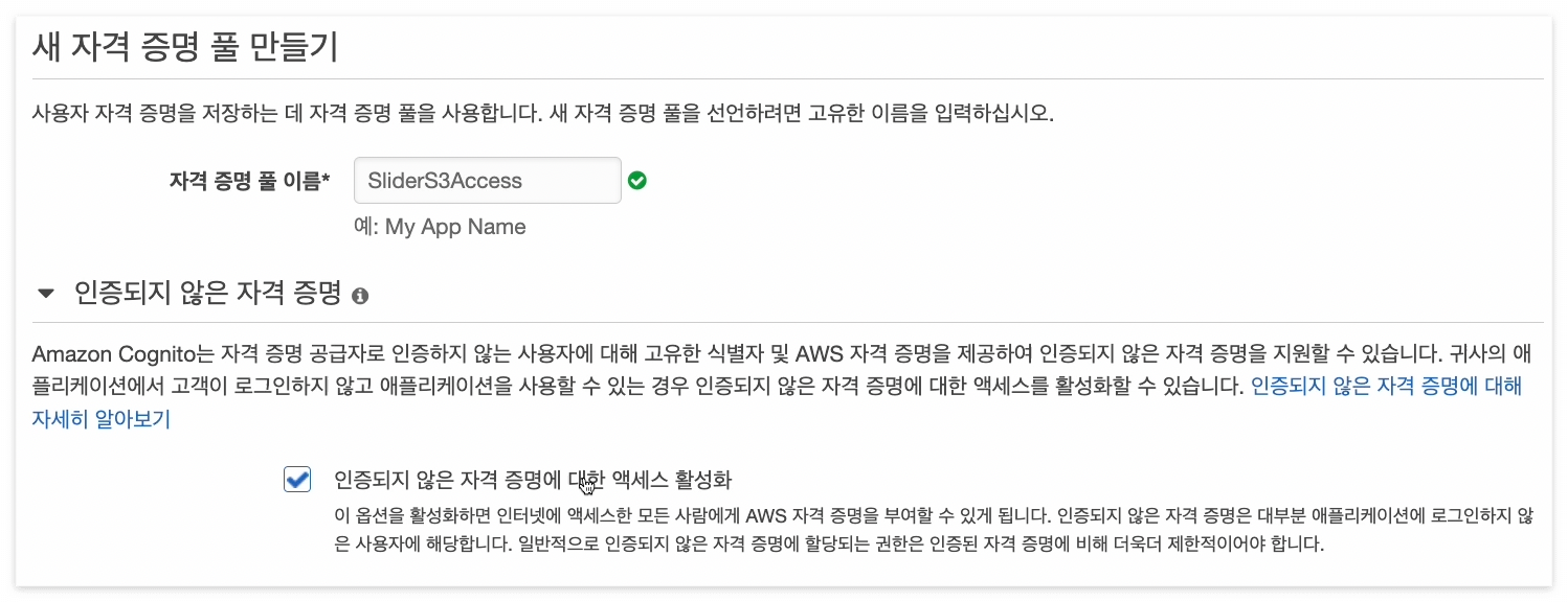 env.S3_IDENTITY_POOL_ID = '설정한 IDENTITY_POOL_ID값 입력';