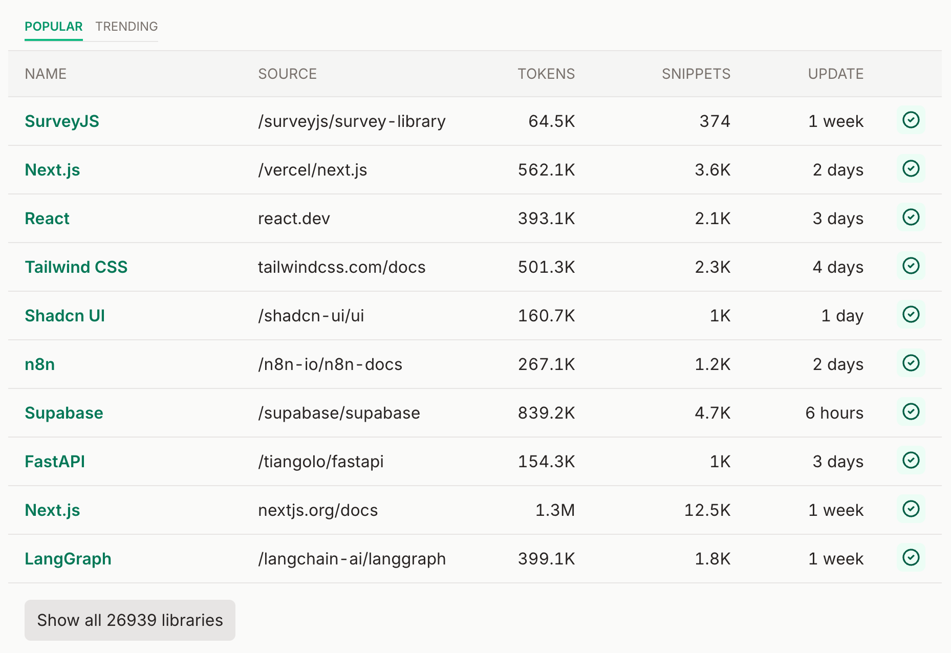 Context7 MCP를 설치하면 개발 프레임워크의 최신 공식 문서를 참조할 수 있습니다.
