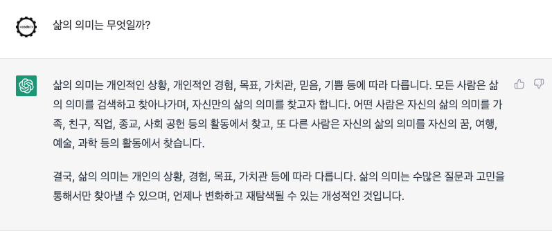 ChatGPT에게 "삶의 의미는 무엇일까?"라는 질문을 한번 해보았습니다.
