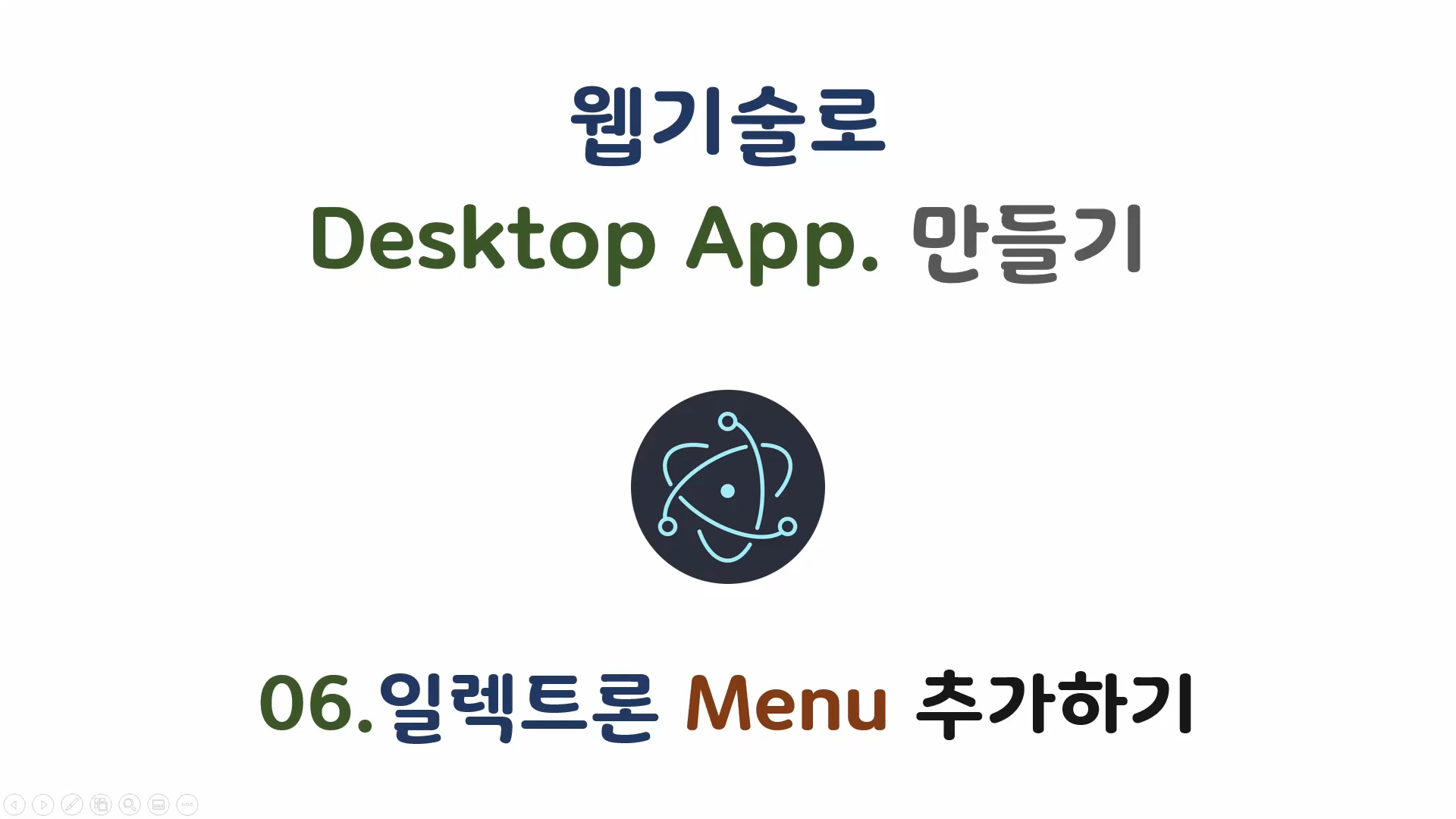 - 일렉트론 menu에서는 일반적인 메뉴를 role 메뉴로 만들어 제공합니다.