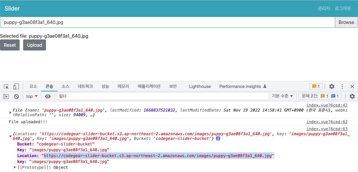 slider-front 프로젝트에서 s3 upload 후에 backend api를 호출하도록 소스를 변경합니다.