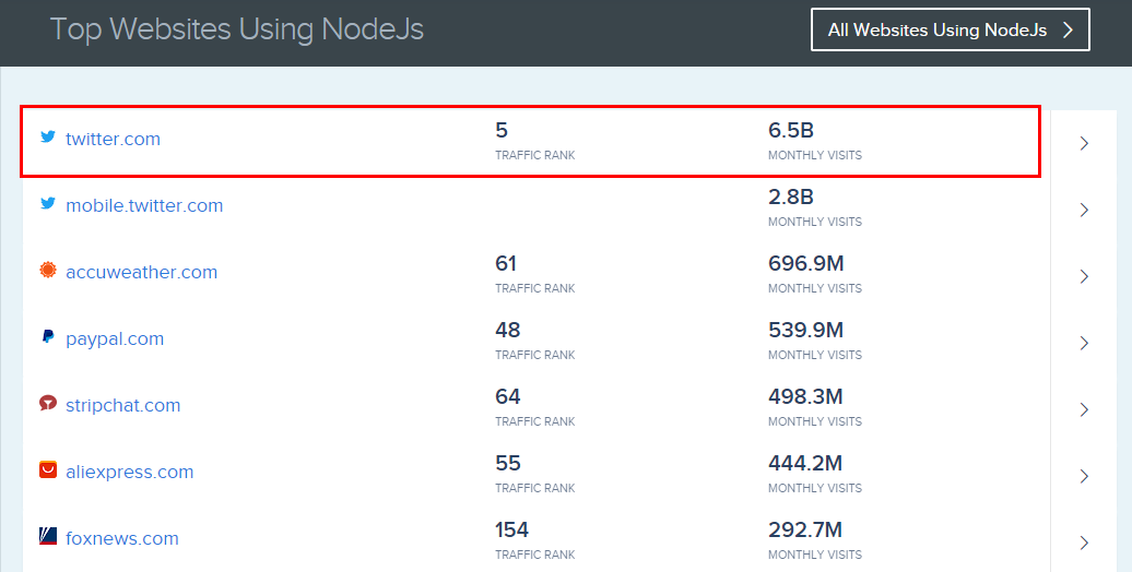See which Websites are using NodeJs and more market share statistics. Node.js is a JavaScript runtime built on Chrome's V8 JavaScript engine. Node.js uses an...