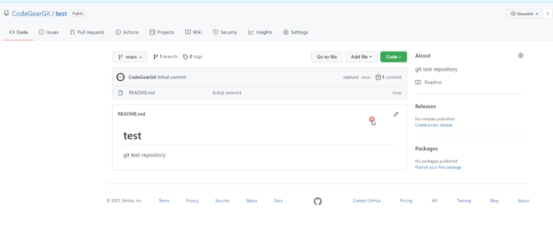 Repository 이름 "test"로 입력하고 하단의 "Create Repository" 버튼을 클릭합니다.