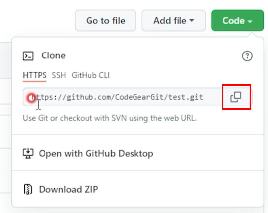 github.com의 repository에서 code 버튼을 클릭