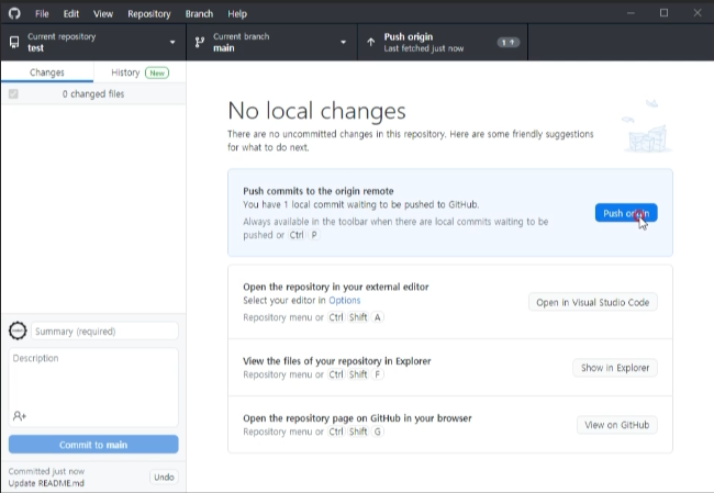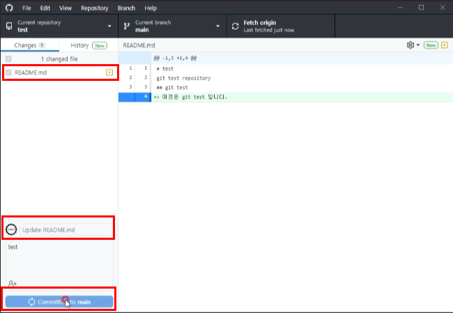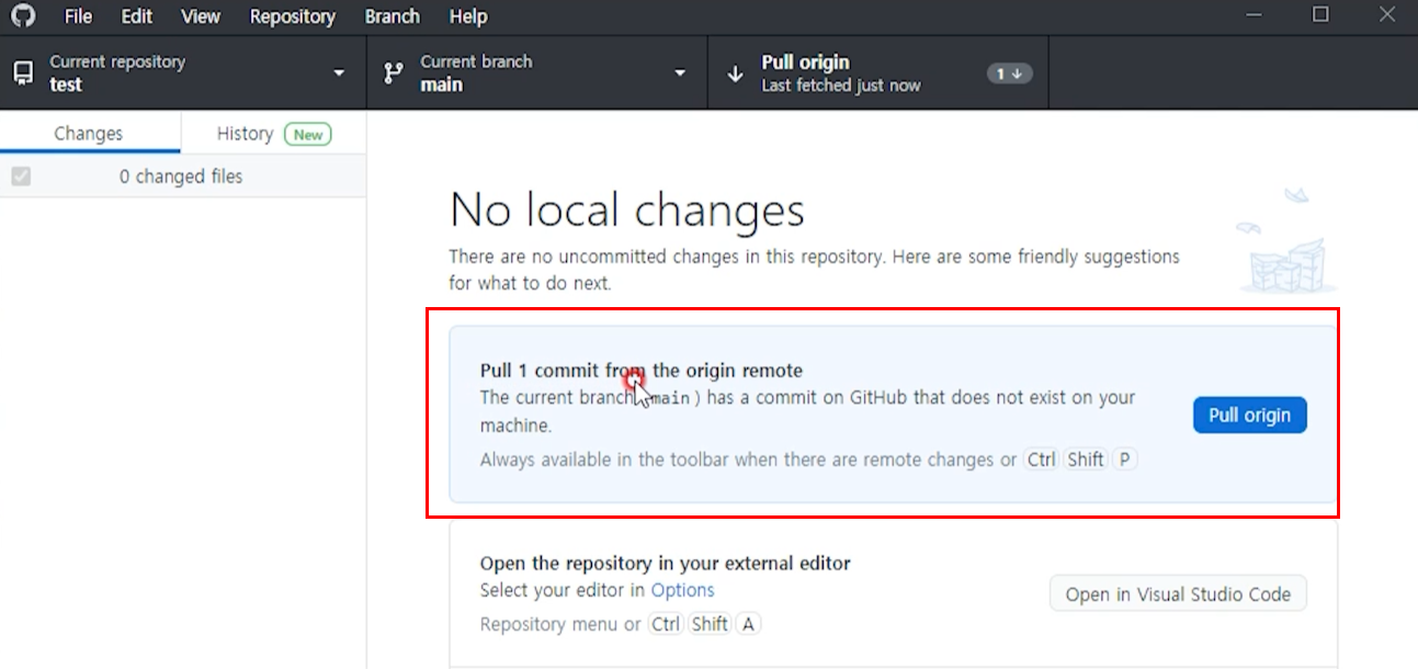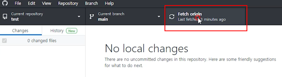 github desktop에서 fetch origin을 선택합니다.