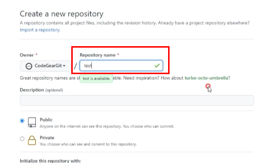 Repository 이름 "test"로 입력하고 하단의 "Create Repository" 버튼을 클릭합니다.