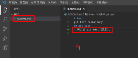 README.md 파일을 수정하고 저장합니다.