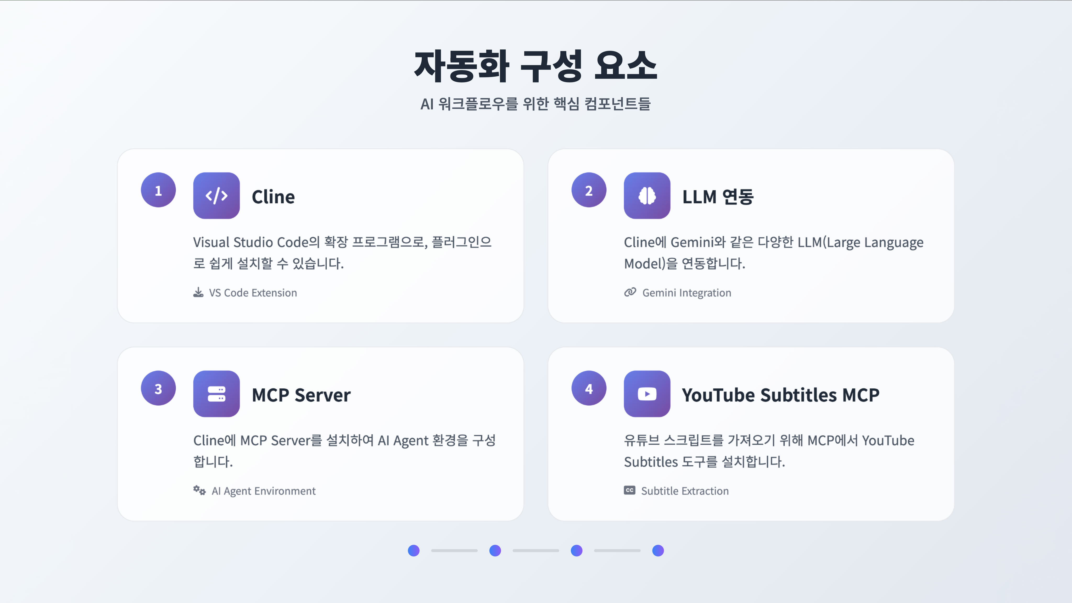 - MCP Server 설치: Cline에 MCP Server를 설치하여 AI Agent 환경을 구성합니다.
