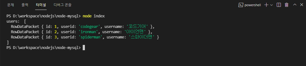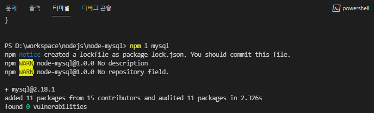 - npm i mysql을 실행합니다.