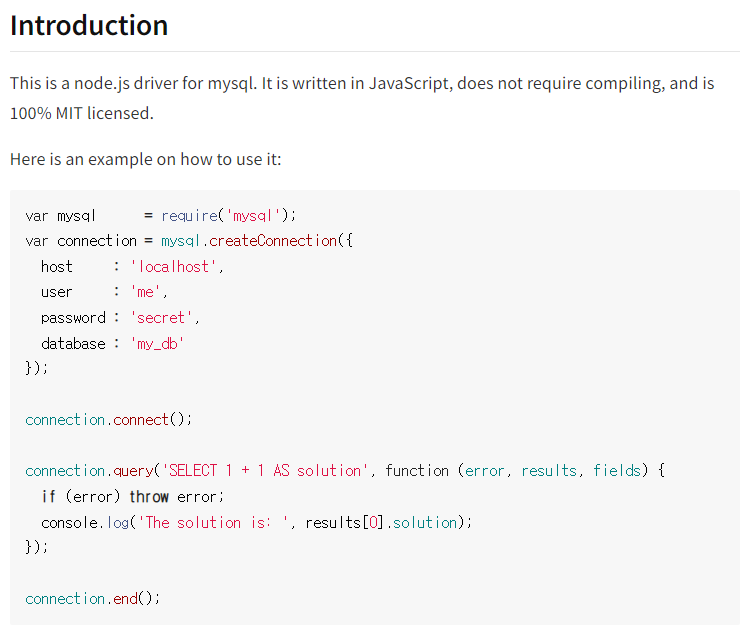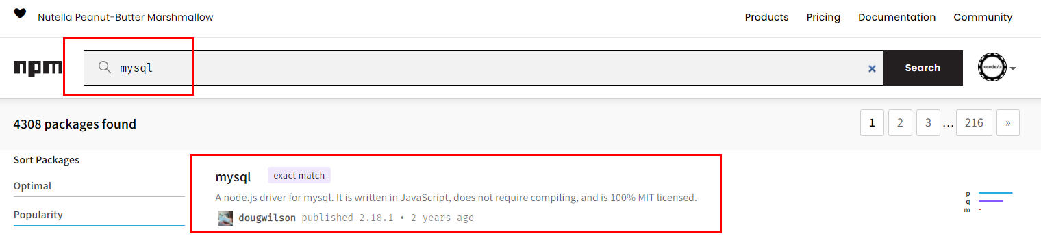 - www.npmjs.com에서 mysql을 검색합니다.
