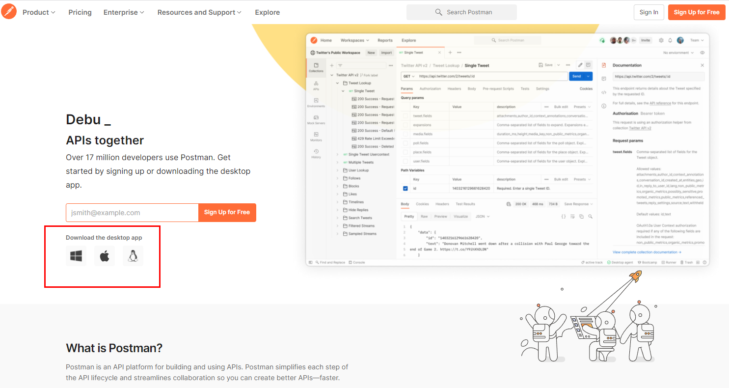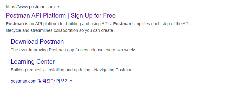 - 첫번째 조회된 postman.com 사이트를 클릭합니다.