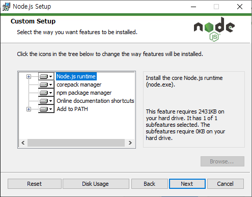 Nodejs 설치가 완료되었습니다.