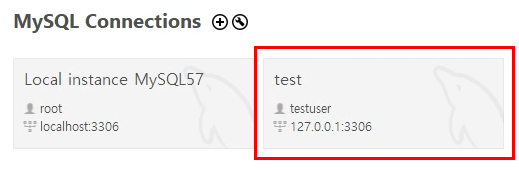 - MySQL Connections 아래 Local instance MySQL의 root 계정으로 설정되어 있는 부분을 클릭하여 MySQL에 접속합니다.
