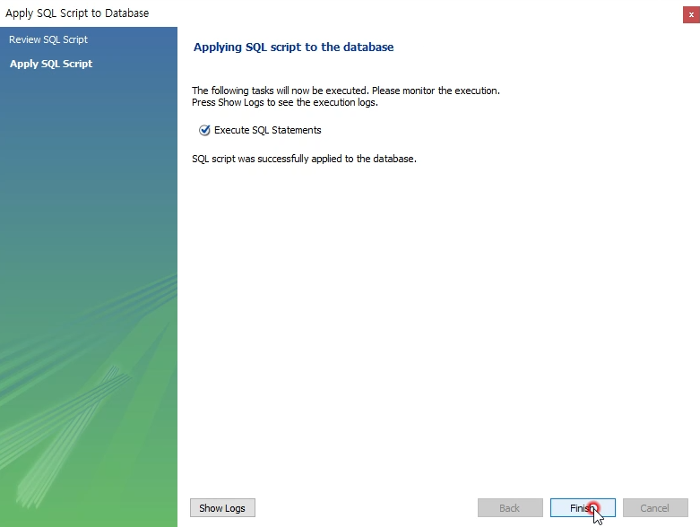 Schema Review - 다음창에서 Finish 버튼을 클릭합니다.