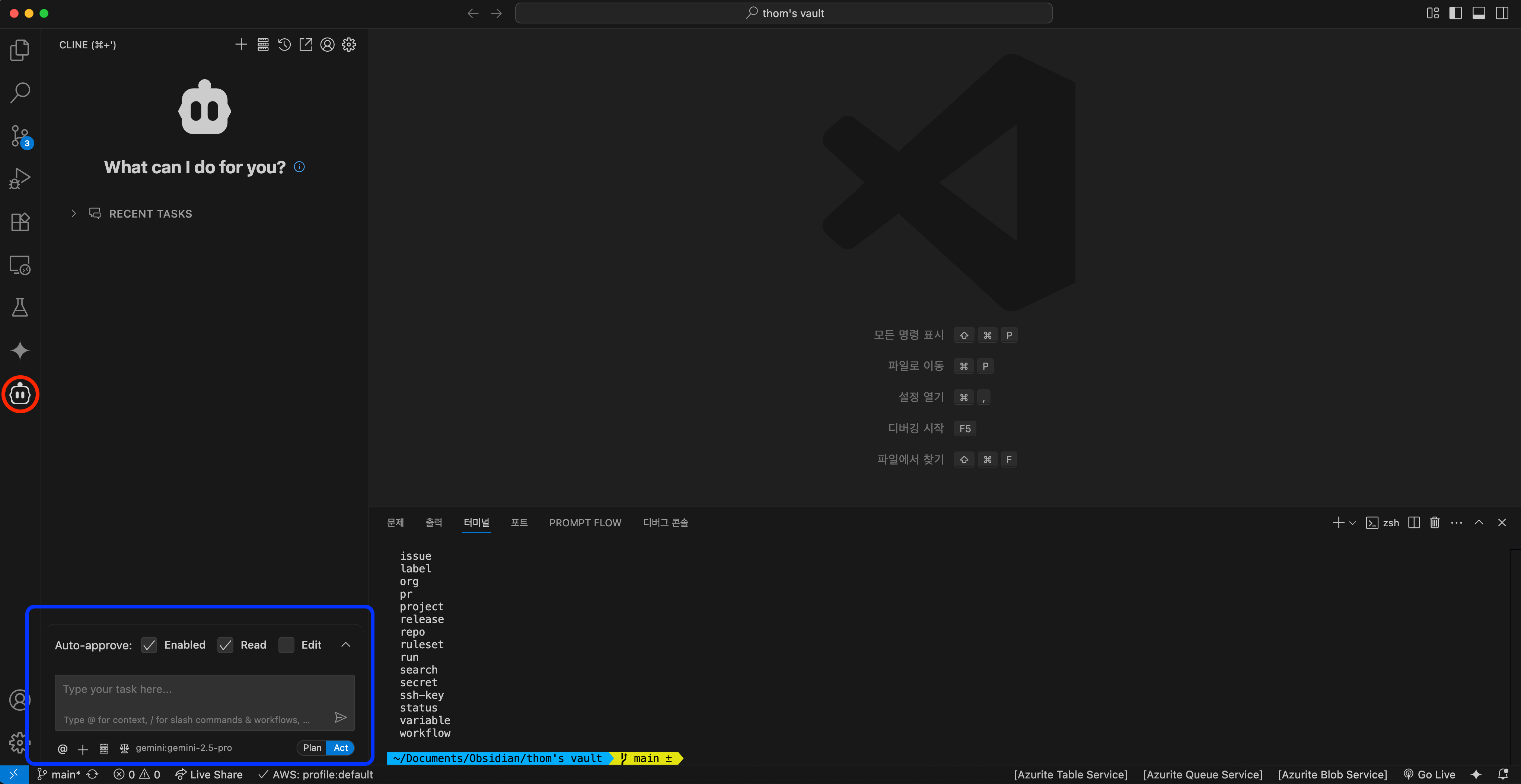이 확장 프로그램은 VS Code 내에 전용 사이드바를 제공하며, 코드를 수정할 때 인라인 차이점(inline diff) 기능을 통해 변경 사항을 실시간으로 직관적으로 확인할 수 있고, 마우스로 원하는 부분을 선택하는 등 그래픽 기반의 사용자 인터페이스를 활용해 효율적으로 코딩 작업을 할 수 있습니다. 복잡한 터미널 명령어를 일일이 입력할 필요가 없어진 것이죠.