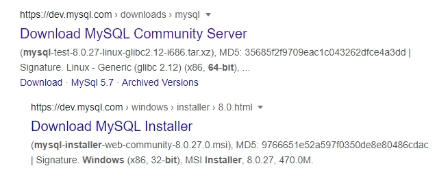 - 검색 결과창에서 "Download MySQL Community Server"를 선택합니다.