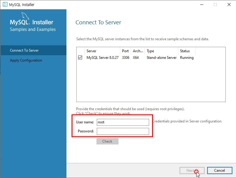 Connect to Server - 설치가 완료되고 MySQL Workbench가 실행됩니다.